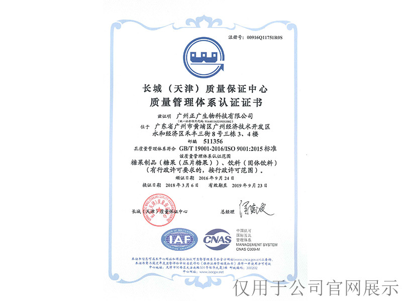 我司取得“ISO9001長(zhǎng)城質(zhì)量保證中心質(zhì)量管理體系認(rèn)證證書”;